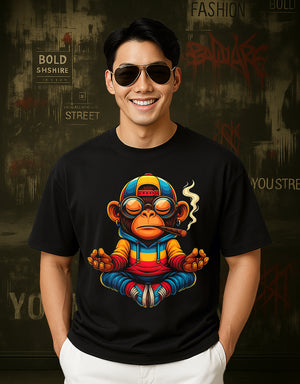 The eye-catching meditating monkey graphic adds a punch of personality – laid-back, colorful, and unapologetically cool. Pair it with cargo pants or joggers and let your outfit do the talking.
