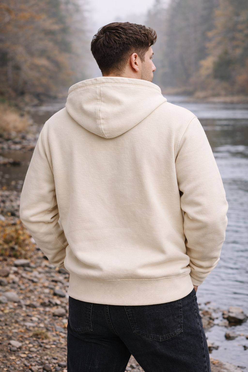 Its soft brushed interior provides all-day comfort, while the structured outer finish ensures the hoodie holds its shape wear after wear. The clean, no-print design makes it a versatile staple — easy to pair with jeans, cargos, or layered under jackets.