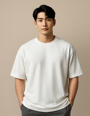 Plain Off-White Oversized Drop Shoulder T-Shirt | Premium Heavyweight Streetwear Basic